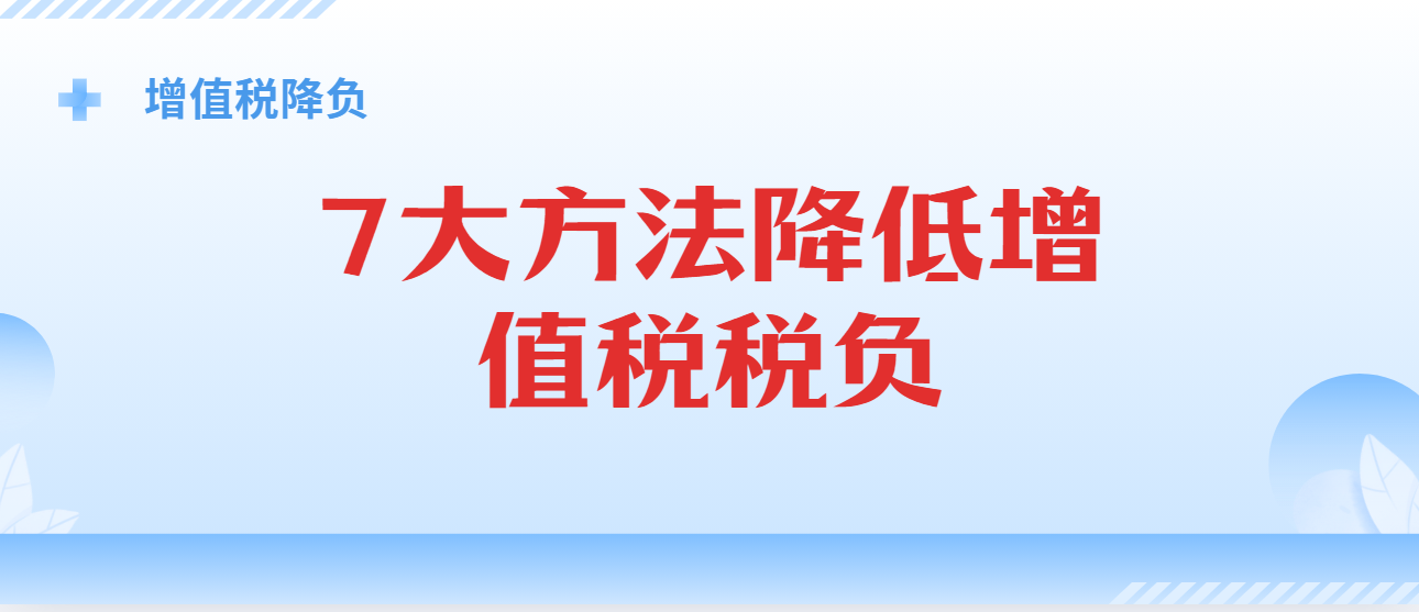 增值税降负:7大方法降低增值税税负,不信您试试!