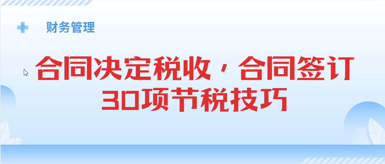 合同决定税收,合同签订30项节税技巧